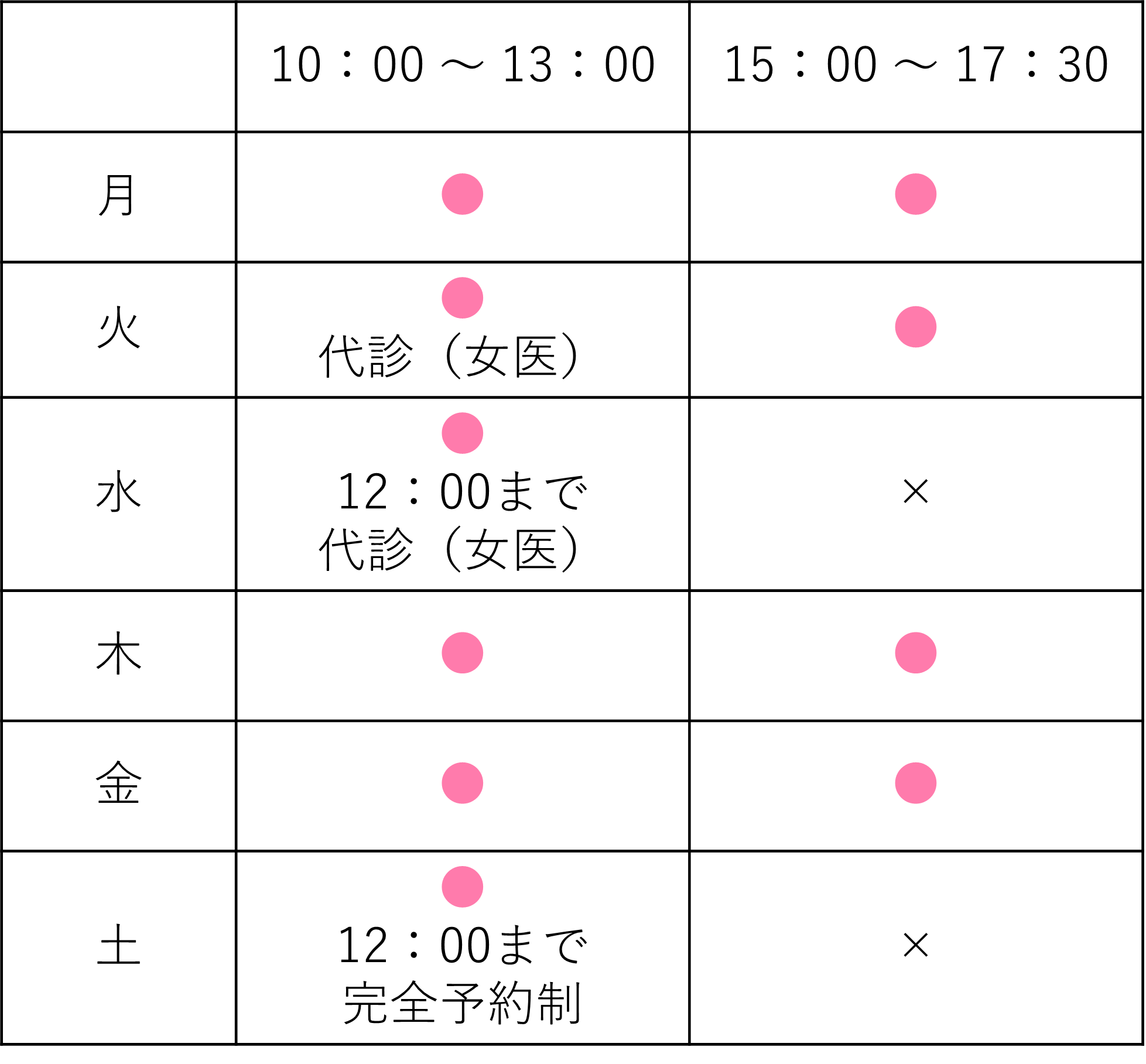 土曜日のみ 完全予約制