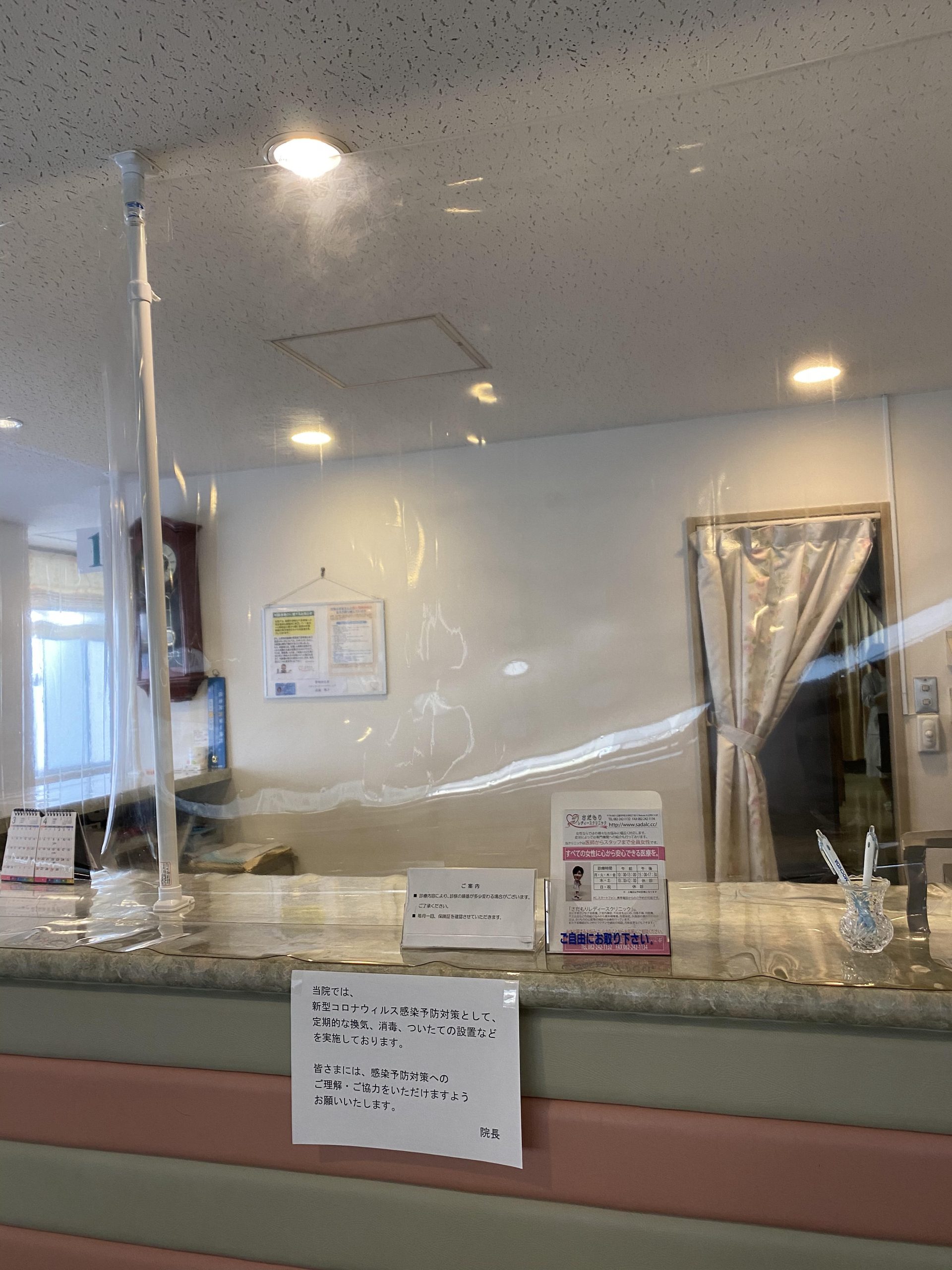当院では、新型コロナウィルス感染拡大予防対策として定期的な換気、こまめな消毒、ついたての設置、マスク・アイガード・フェイスシールドの着用などを実施しております。