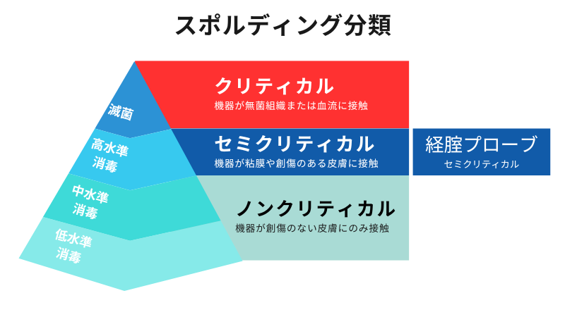 スポルディング分類は再利用可能な医療機器や器具の消毒及び滅菌の必要性の分類です。