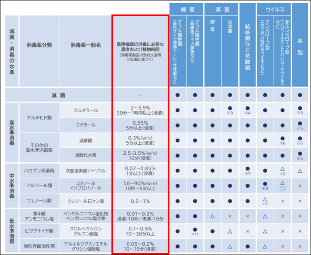 ※5) 大量の芽胞が存在する場合などは十分な効果が得られないことがある/長時間の接触が必要な場合がある(参考資料①②)